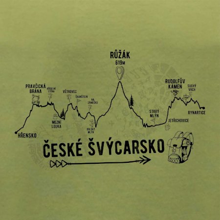 České Švýcarsko je prý nejhezčí místo u nás! Triko pro turistu a milovníka přírody. Projdi si celou cestu podle trika - Hřensko, Pravčická brána, Křídelní stěna, Mezní louka, Větrovec, Šaunštejn, Na Zámečku, Růžák, Starý mlýn, Rudolfův kámen, Jetřichovice, Suchý vrch, Rynartice. Sbal batoh a vyraz na výlet!
