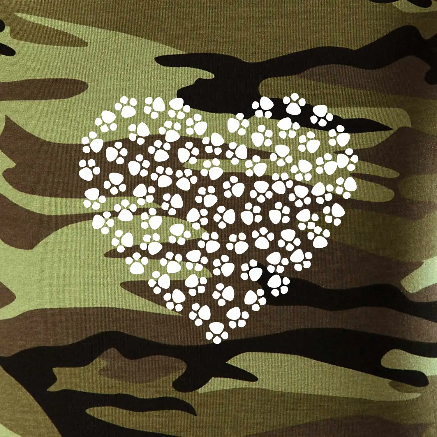 Tričko střední gramáže v barvách camouflage. Střih s bočními švy. Lem průkrčníku ze žebrového úpletu s přídavkem 5 % elastanu. Vnitřní část zadního průkrčníku začištěna páskou v barvě camouflage.