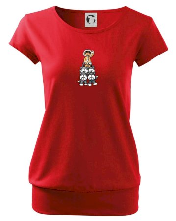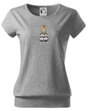 Trendové dámské triko s velmi krátkým rukávem, volnějšího střihu, v dolním kraji všité do širokého lemu. Kulatý průkrčník s úzkým lemem ze shodného materiálu.