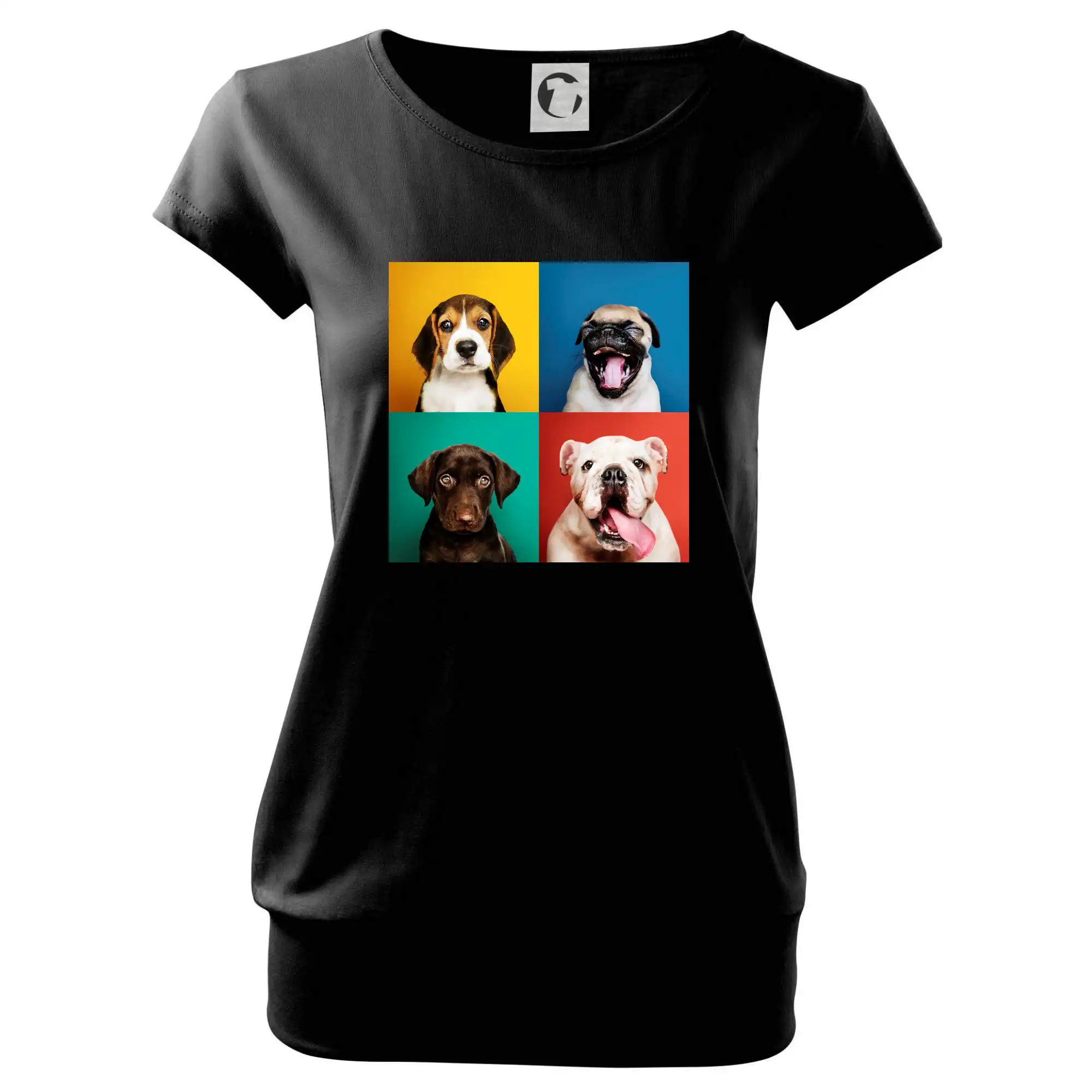 Trendové dámské triko s velmi krátkým rukávem, volnějšího střihu, v dolním kraji všité do širokého lemu. Kulatý průkrčník s úzkým lemem ze shodného materiálu.