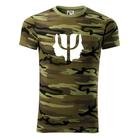 Tričko střední gramáže v barvách camouflage. Střih s bočními švy. Lem průkrčníku ze žebrového úpletu s přídavkem 5 % elastanu. Vnitřní část zadního průkrčníku začištěna páskou v barvě camouflage.