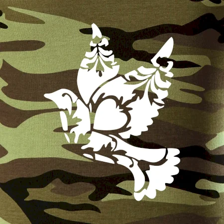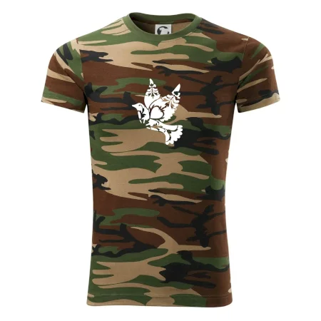Tričko střední gramáže v barvách camouflage. Střih s bočními švy. Lem průkrčníku ze žebrového úpletu s přídavkem 5 % elastanu. Vnitřní část zadního průkrčníku začištěna páskou v barvě camouflage.