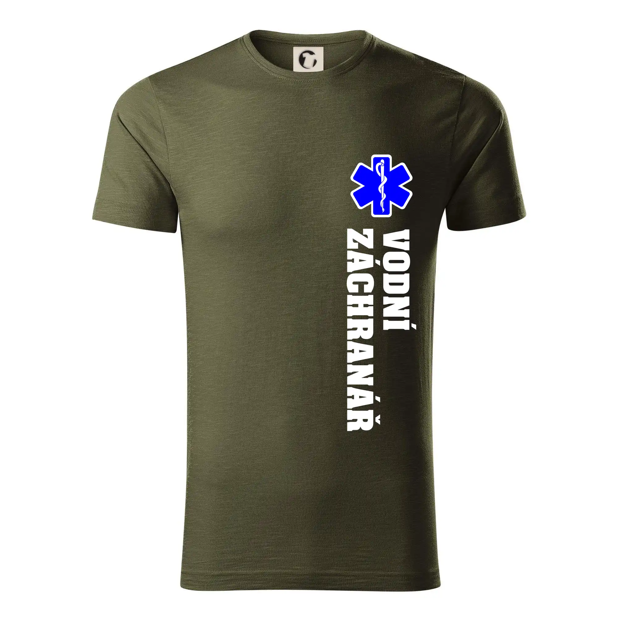 Skvělé triko pro všechny záchranáře a členy rescue složek. Záchranářské triko na kterém je nápis Záchranář a modrá hvězda života. Triko je vhodný dárek pro záchranáře.