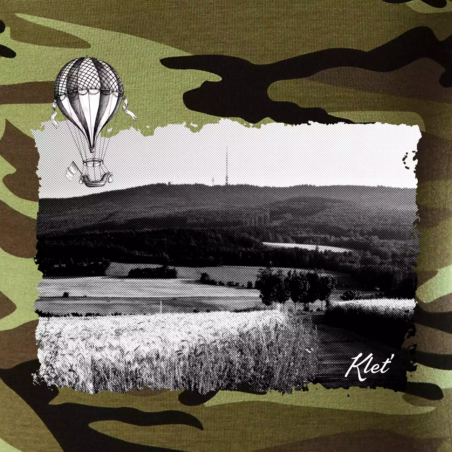 Tričko střední gramáže v barvách camouflage. Střih s bočními švy. Lem průkrčníku ze žebrového úpletu s přídavkem 5 % elastanu. Vnitřní část zadního průkrčníku začištěna páskou v barvě camouflage.