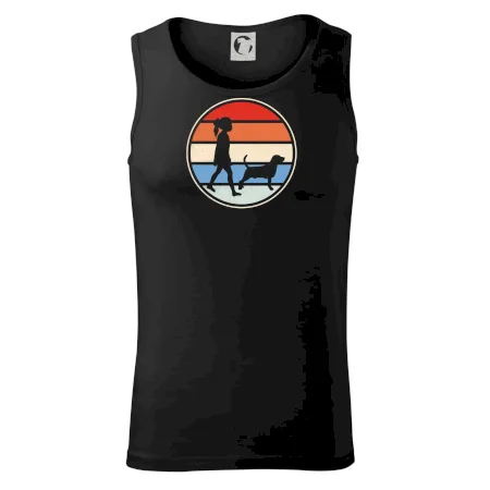 Retro kruh - dívka a pes na procházce