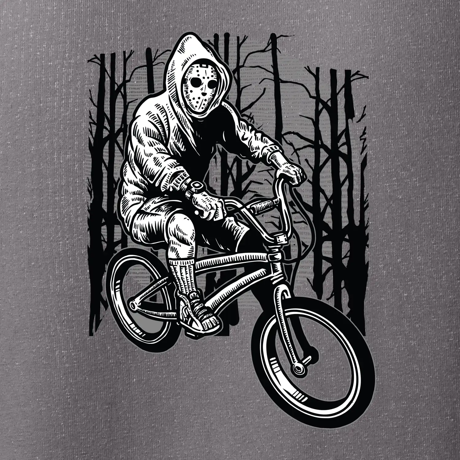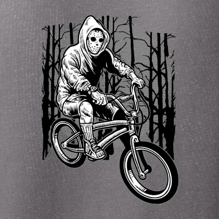 Jezdíš rád na kole až na hranu? Pak je tohle triko jako z hororu s klukem na kole v masce přesně pro tebe