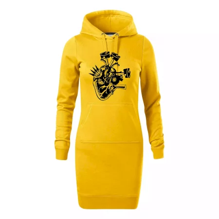 Dámské mikinové šaty MALFINI Snap 419 jsou ideální volbou pro ženy, které hledají pohodlný a stylový kousek pro volný čas nebo každodenní nošení. Lehce vypasovaný střih s bočními švy podtrhuje ženskou siluetu, zatímco kapuce s podšívkou a stahovací šňůrkou dodává ležérní vzhled.