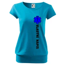 Trendové dámské triko s velmi krátkým rukávem, volnějšího střihu, v dolním kraji všité do širokého lemu. Kulatý průkrčník s úzkým lemem ze shodného materiálu.