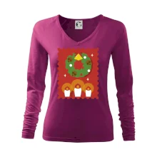 Tolerantnější vypasování dámského střihu, který je vhodný pro všechny typy postavy, ideální délka rukávů a konzervativní výstřih zakončený žebrováním, které skvěle drží tvar.
