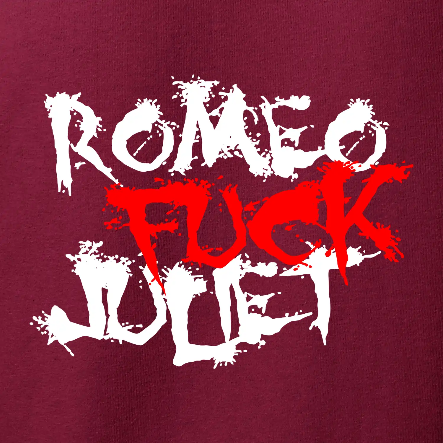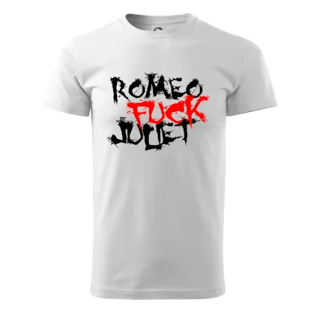 Vtipné tričko s nápisem "Romeo fuck Juliet". Pokud máš smysl pro humor a nejsi suchar, pak se ti tohle triko s motivem Romeo a Julie bude líbit. Vtipný dárek - triko s vtipným nápisem.