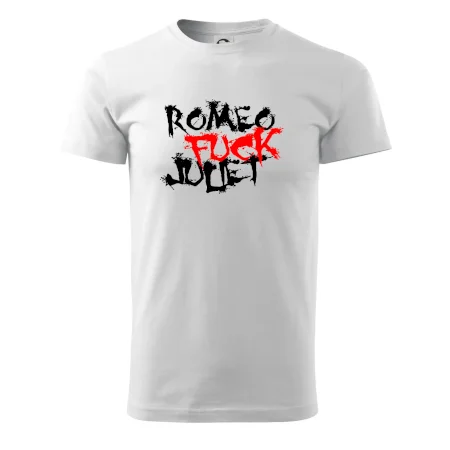 Vtipné tričko s nápisem "Romeo fuck Juliet". Pokud máš smysl pro humor a nejsi suchar, pak se ti tohle triko s motivem Romeo a Julie bude líbit. Vtipný dárek - triko s vtipným nápisem.