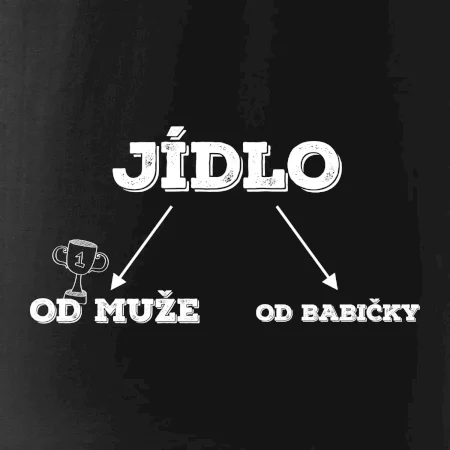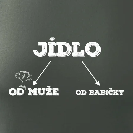 Vtipné triko pro kuchaře, na kterém je vidět rozdíl mezi jídlem od babičky a od muže. Každý kdo má rád jídlo by si měl tohle triko pořídit!