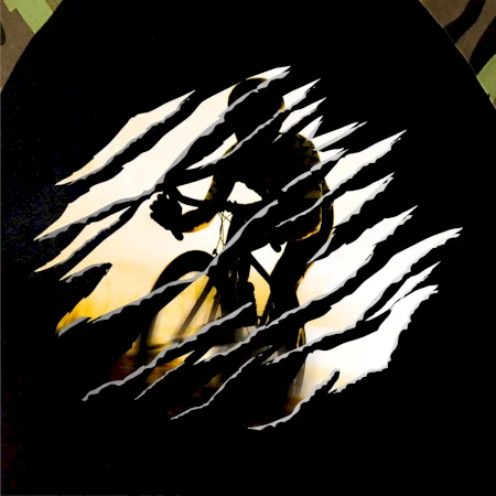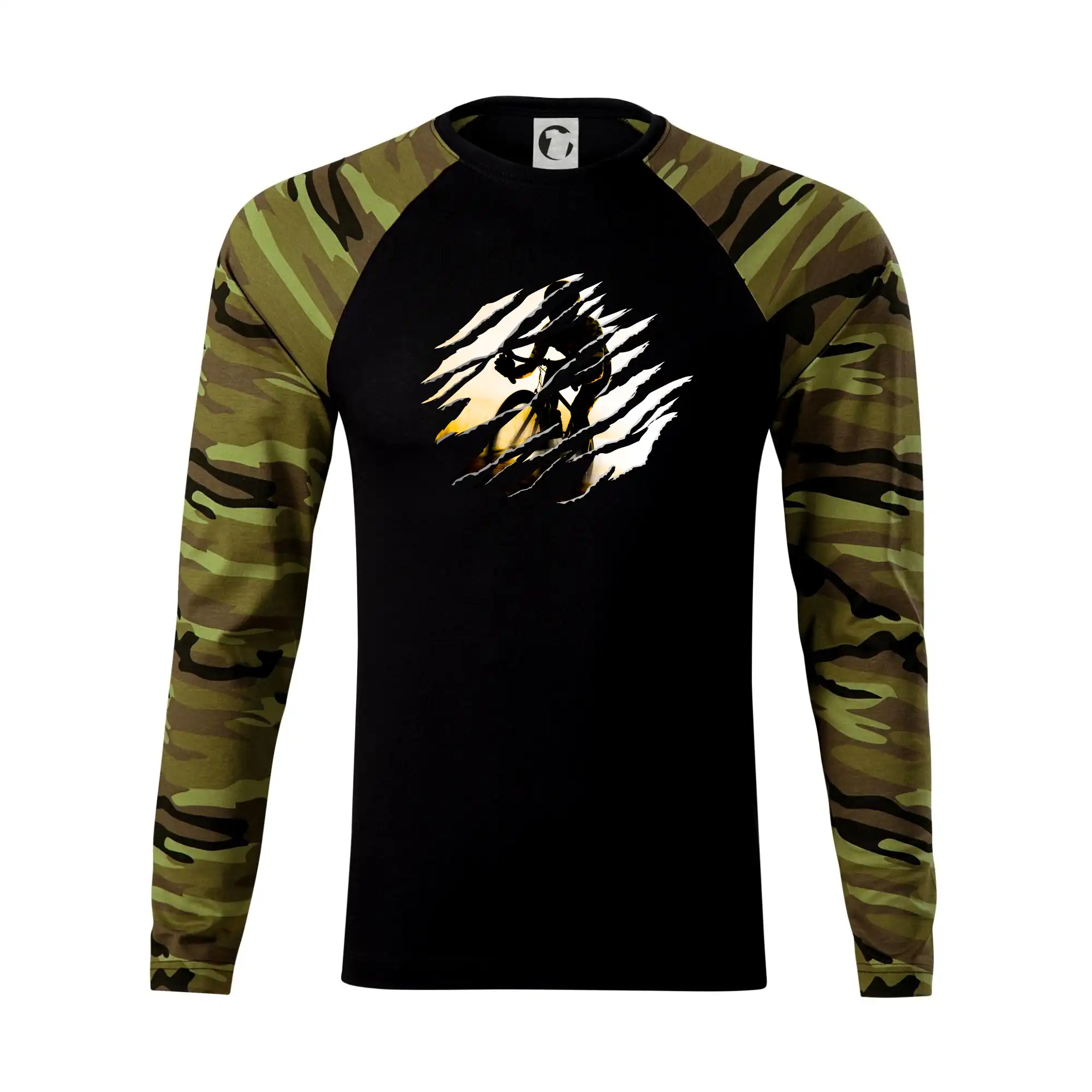Roztržené triko - silniční cyklista při západu - Camouflage LS