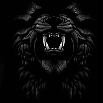 Ručně kreslená hlava lva se zuby