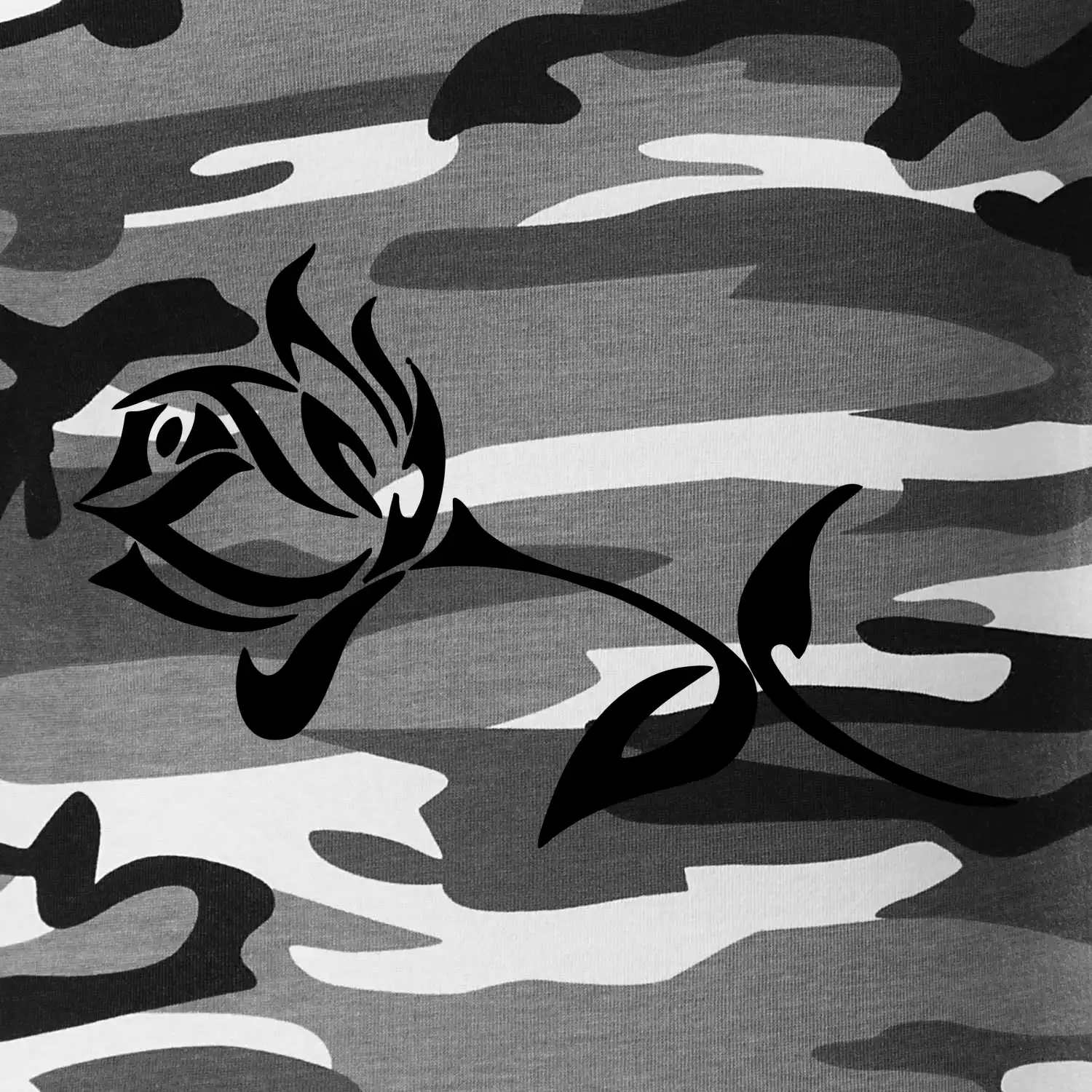 Tričko střední gramáže v barvách camouflage. Střih s bočními švy. Lem průkrčníku ze žebrového úpletu s přídavkem 5 % elastanu. Vnitřní část zadního průkrčníku začištěna páskou v barvě camouflage.