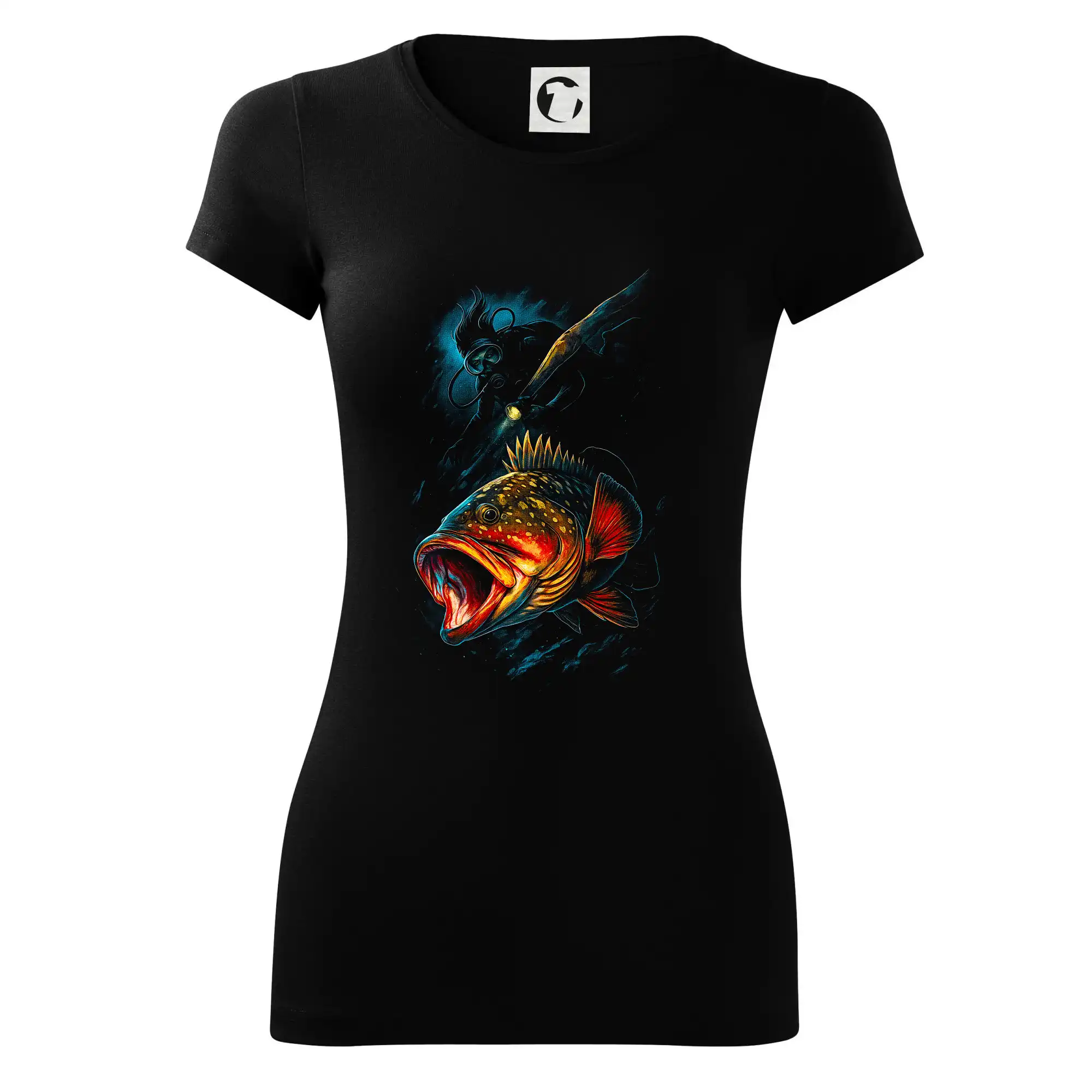 Ryba s otevřenou tlamou a potápěč