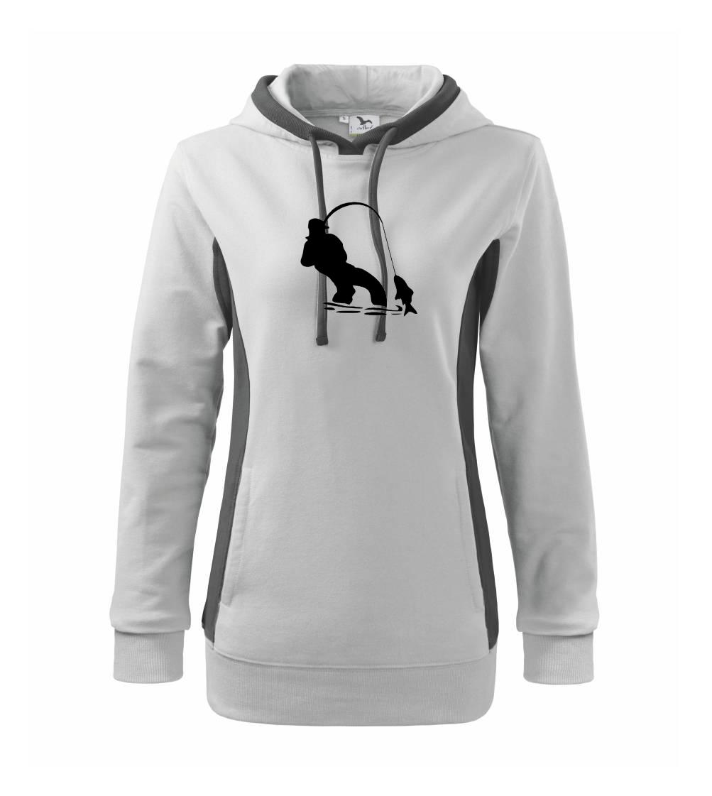 Rybář tahající rybu - Mikina dámská Kangaroo s kapucí