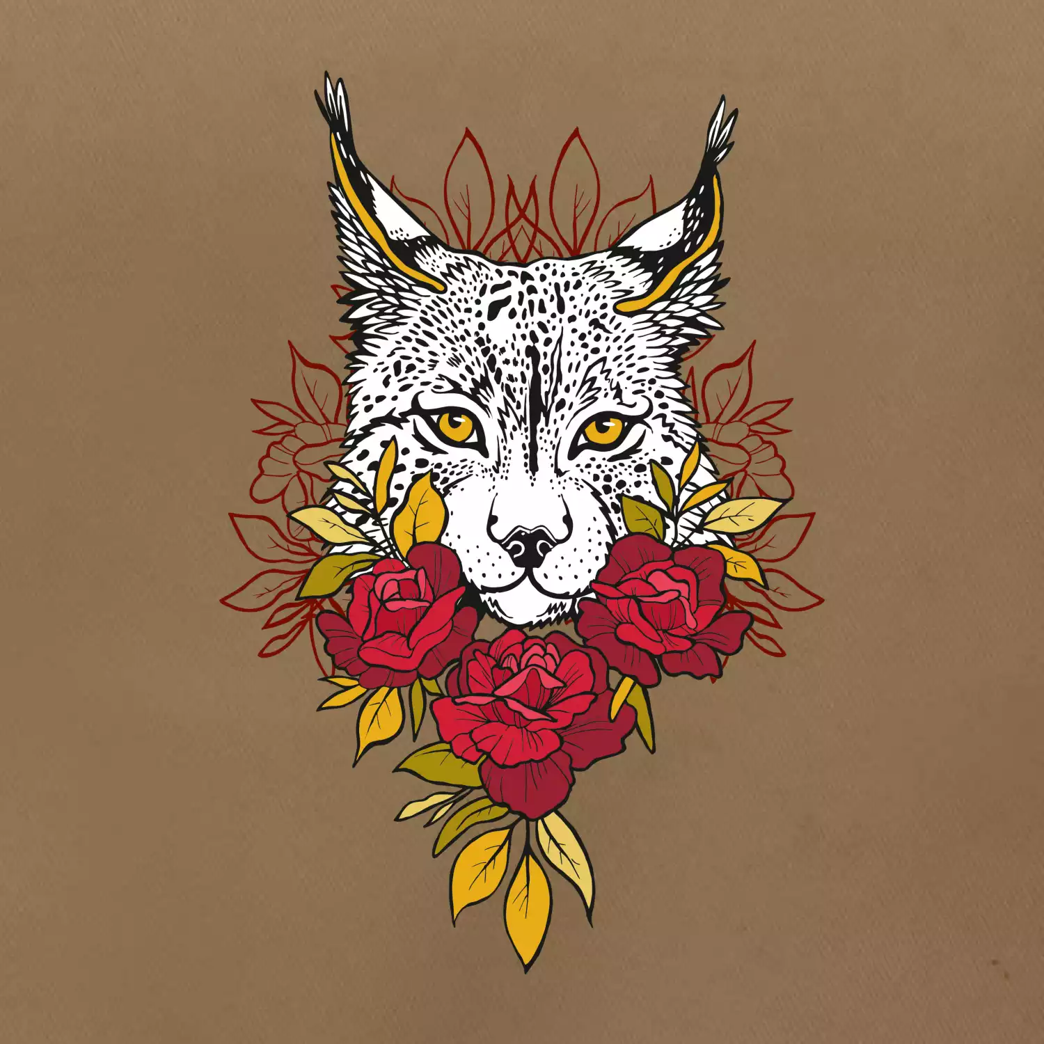 Rys s červenými růžemi (Pecka design)