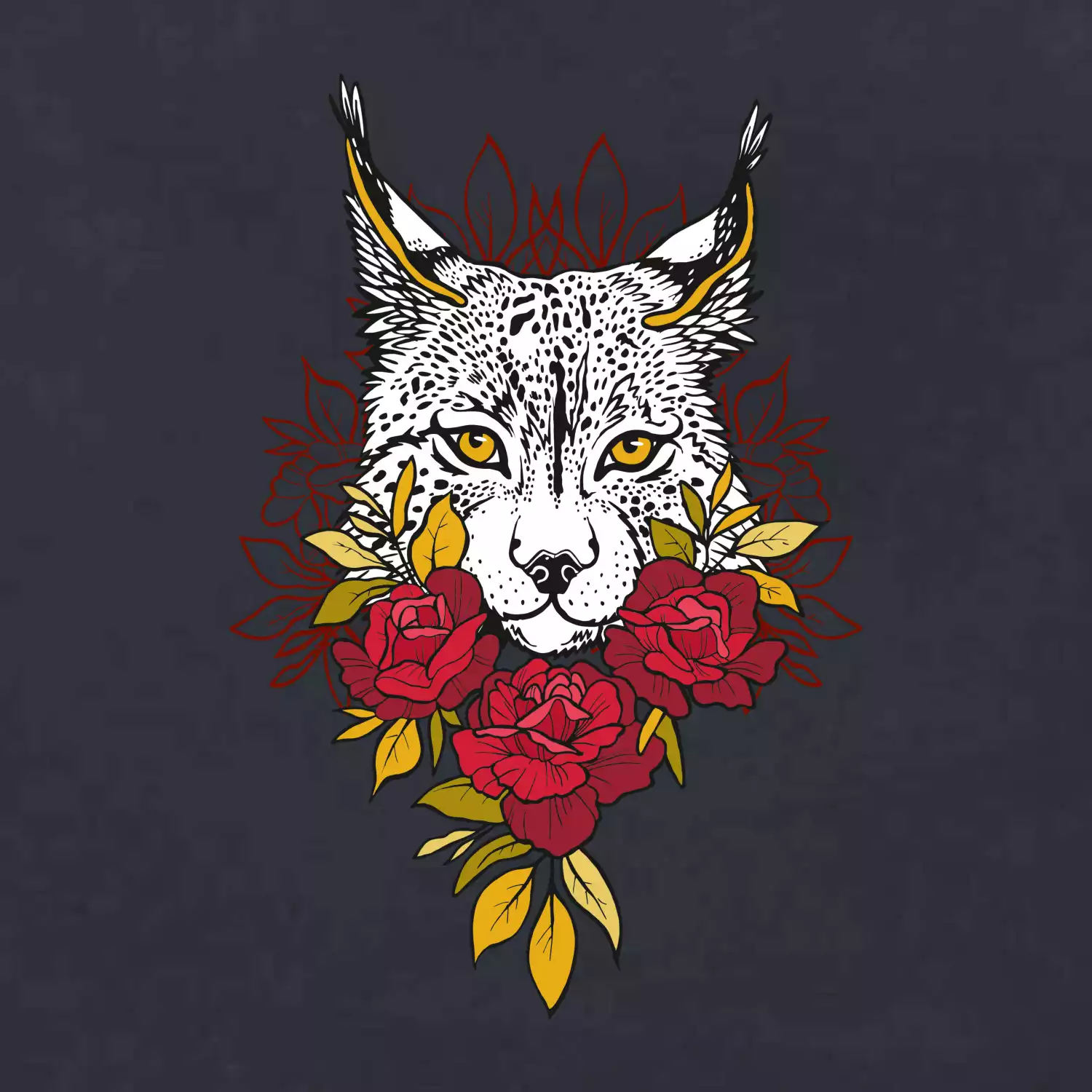 Rys s červenými růžemi (Pecka design)
