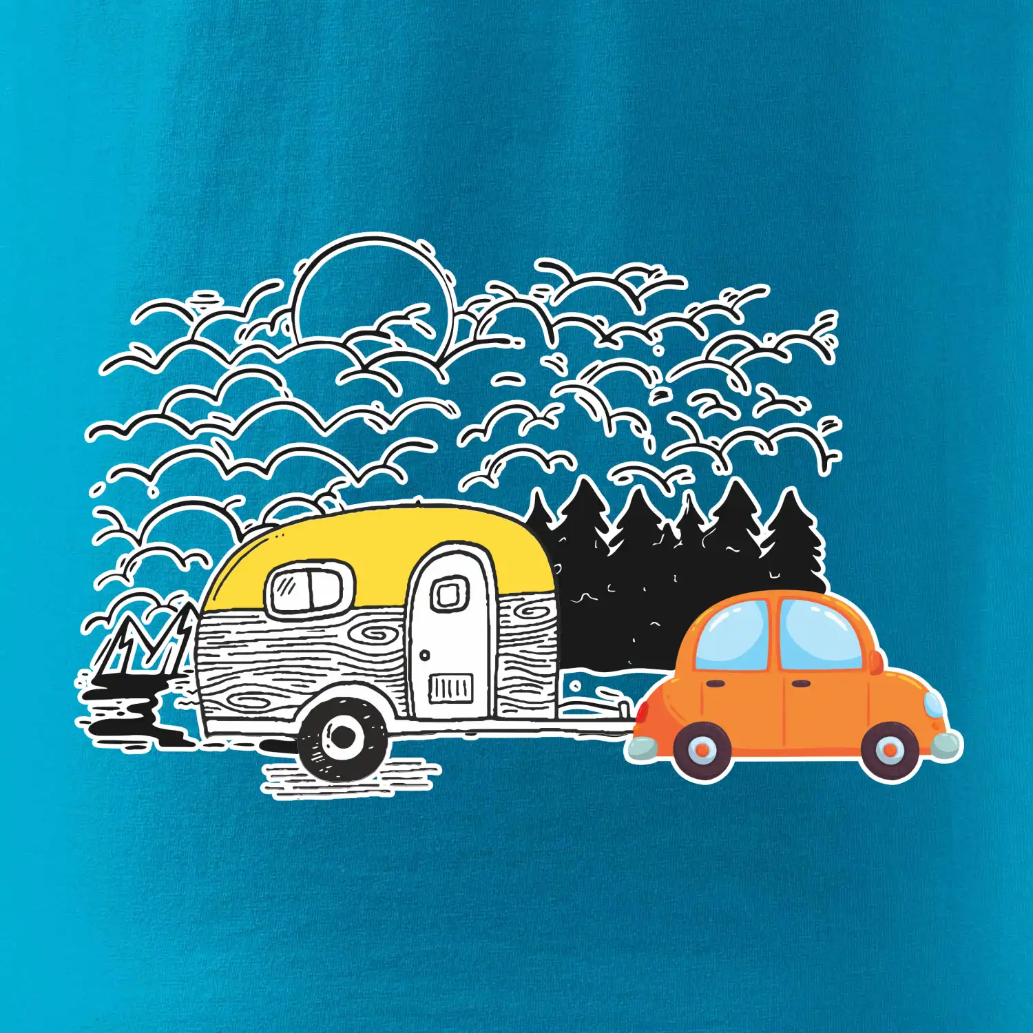 Pohodička a volnost. Znáš taky ten pocit, kdy se jen tak sebereš a jedeš si kam chceš? U obytňáku nebo karavanu můžeš dělat parádu ve skvělém tričku. Tento motiv je vhodný také na polštář jako dekorace do obytňáku nebo karavanu.