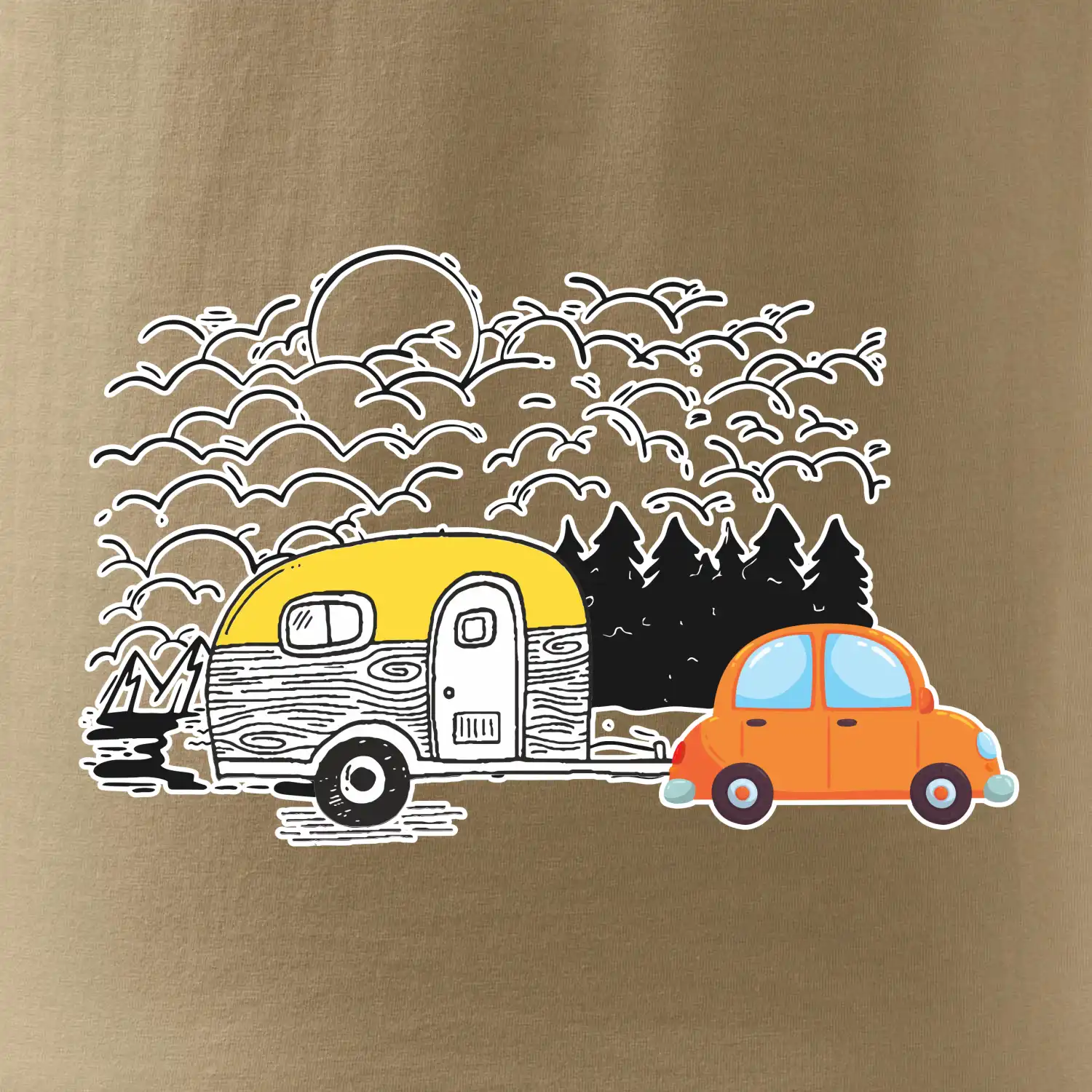 Pohodička a volnost. Znáš taky ten pocit, kdy se jen tak sebereš a jedeš si kam chceš? U obytňáku nebo karavanu můžeš dělat parádu ve skvělém tričku. Tento motiv je vhodný také na polštář jako dekorace do obytňáku nebo karavanu.