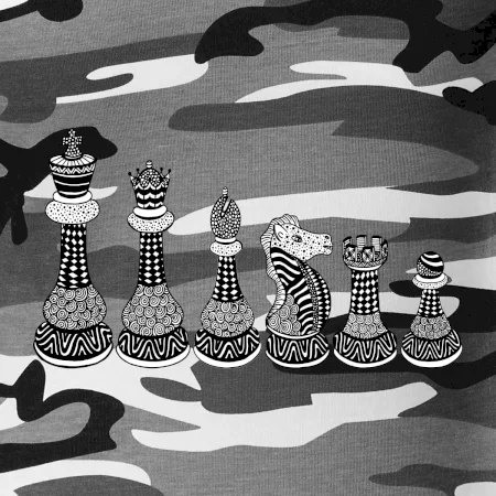Triko jako dárek pro šachistu nebo šachistku. Pokud znáš pojmy jako pěšák, dáma, král, věž nebo kůň, pak je tohle tričko přesně pro tebe nebo někoho v tvém okolí. Tričko s šachovými figurkami v řadě. Šach mat!