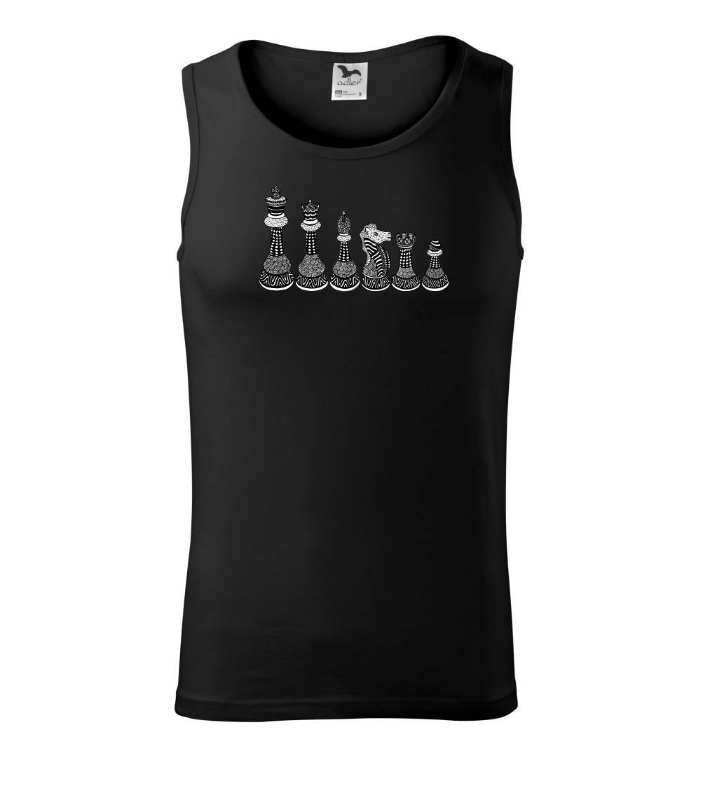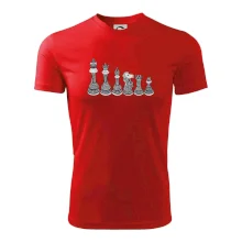 Triko jako dárek pro šachistu nebo šachistku. Pokud znáš pojmy jako pěšák, dáma, král, věž nebo kůň, pak je tohle tričko přesně pro tebe nebo někoho v tvém okolí. Tričko s šachovými figurkami v řadě. Šach mat!