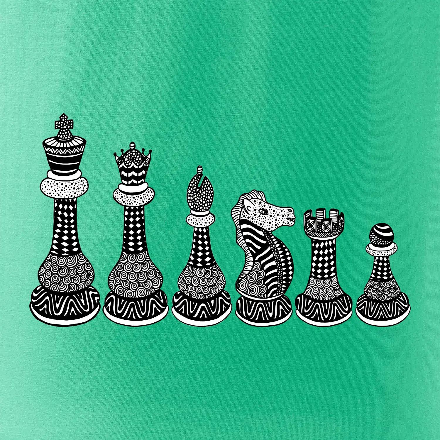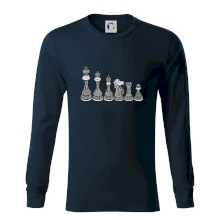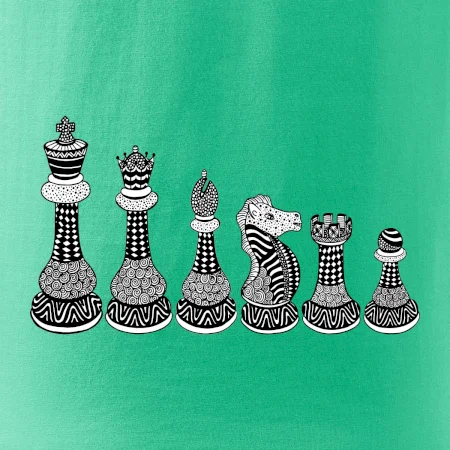 Triko jako dárek pro šachistu nebo šachistku. Pokud znáš pojmy jako pěšák, dáma, král, věž nebo kůň, pak je tohle tričko přesně pro tebe nebo někoho v tvém okolí. Tričko s šachovými figurkami v řadě. Šach mat!