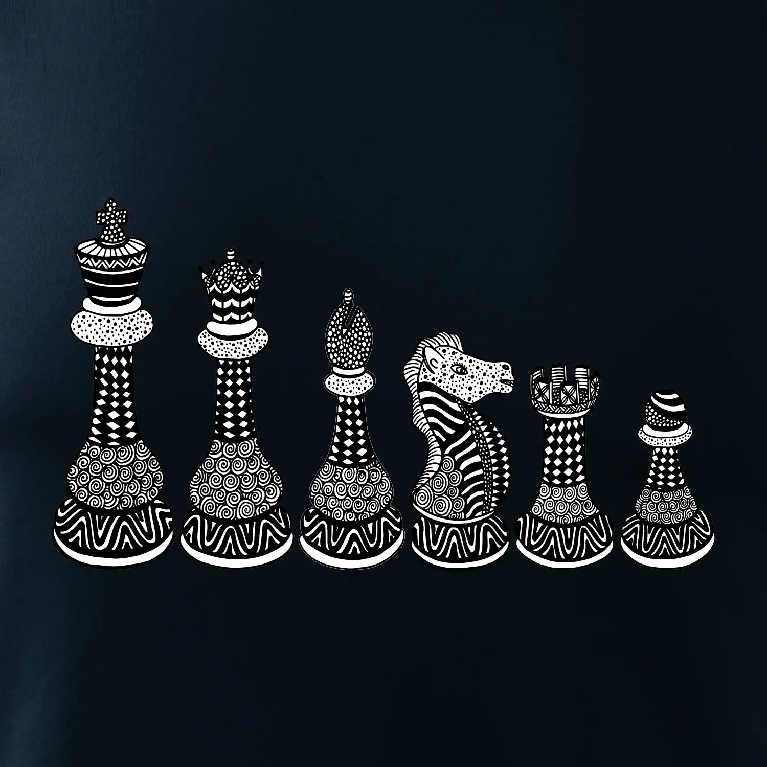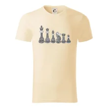 Triko jako dárek pro šachistu nebo šachistku. Pokud znáš pojmy jako pěšák, dáma, král, věž nebo kůň, pak je tohle tričko přesně pro tebe nebo někoho v tvém okolí. Tričko s šachovými figurkami v řadě. Šach mat!