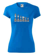 Triko jako dárek pro šachistu nebo šachistku. Pokud znáš pojmy jako pěšák, dáma, král, věž nebo kůň, pak je tohle tričko přesně pro tebe nebo někoho v tvém okolí. Tričko s šachovými figurkami v řadě. Šach mat!
