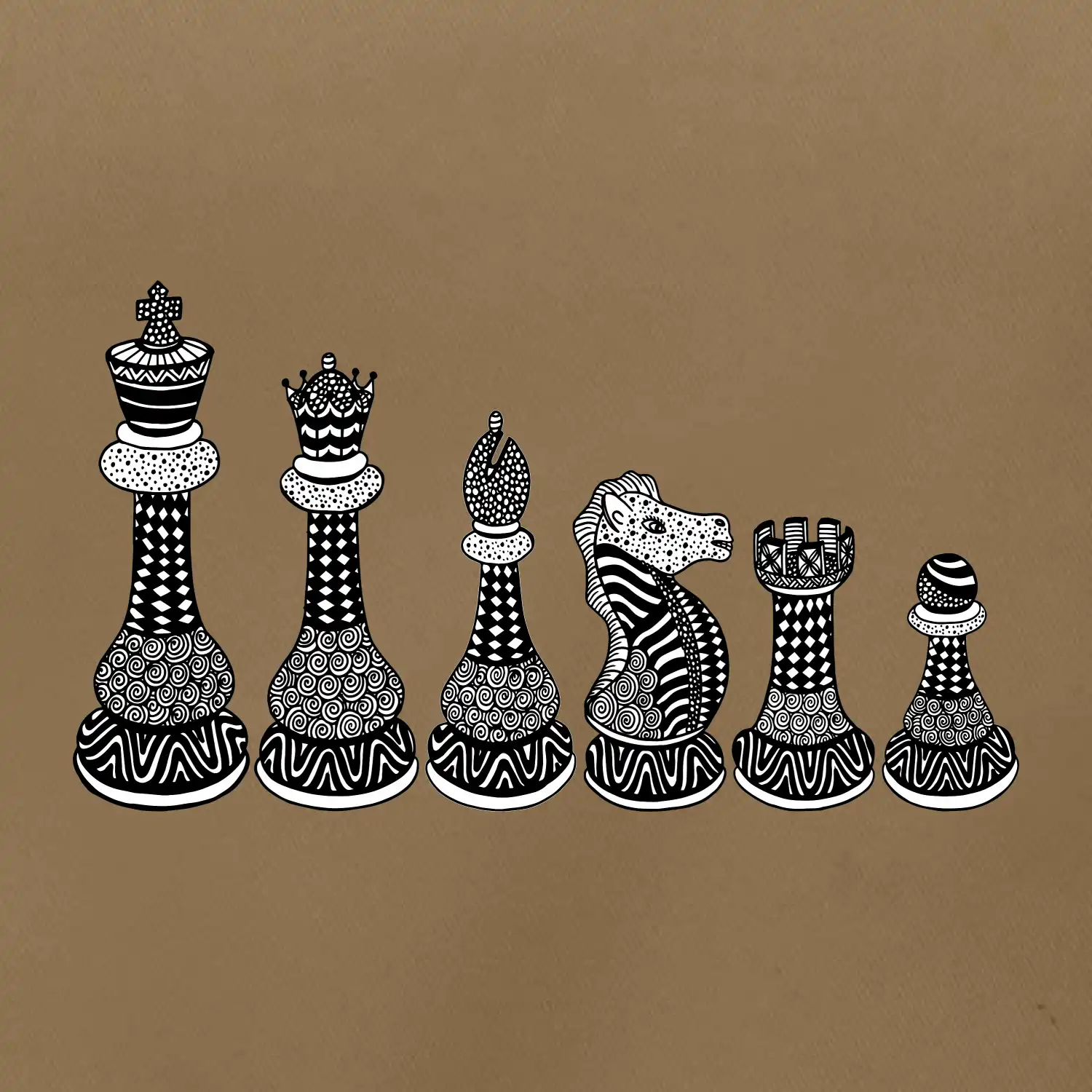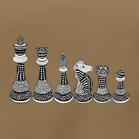 Šachové figurky v řadě - kreslené