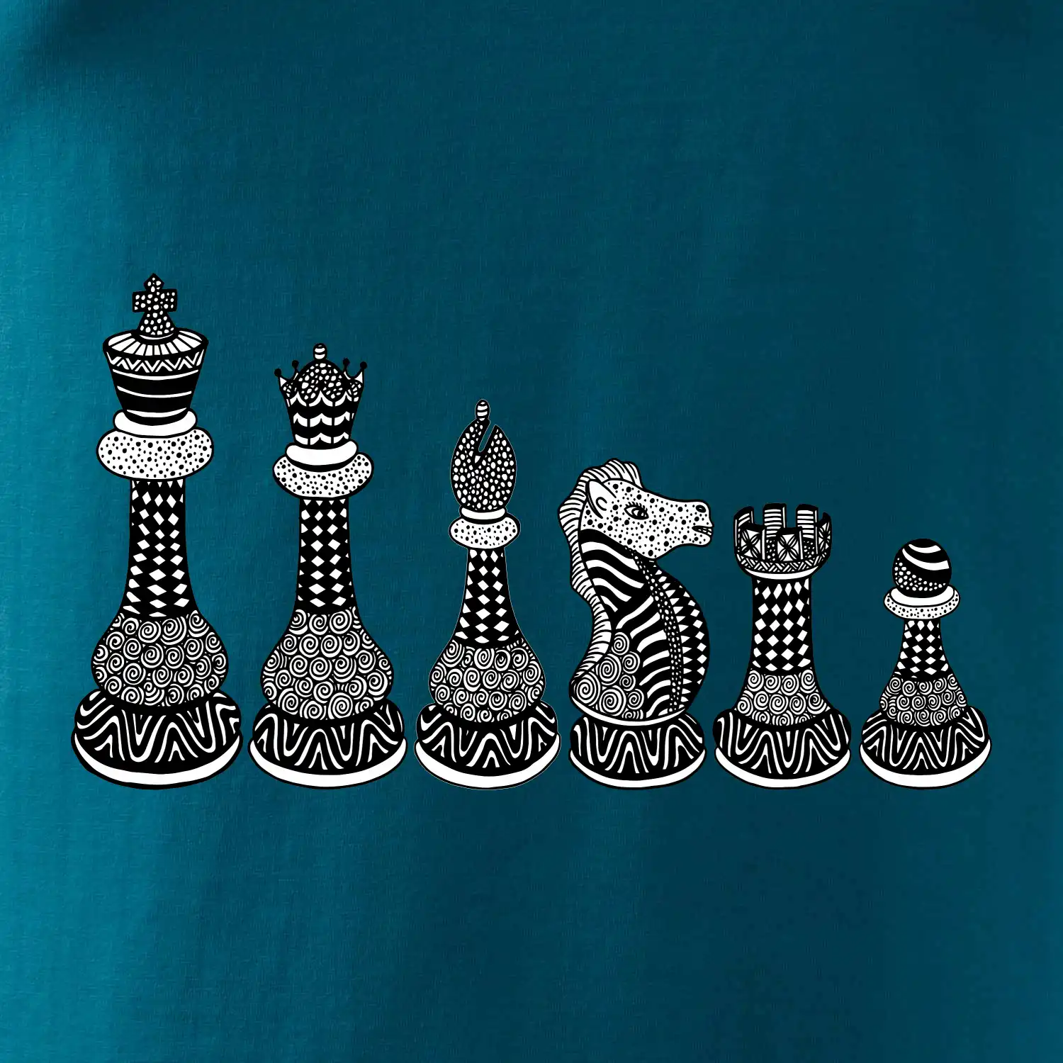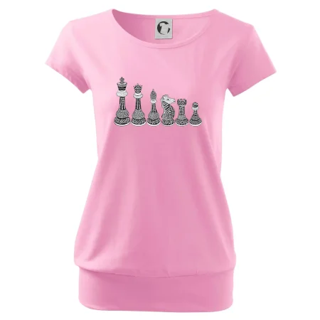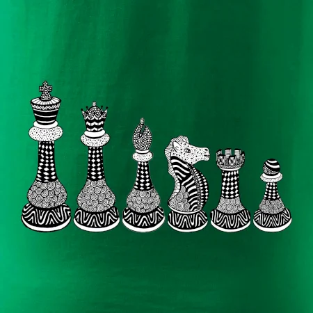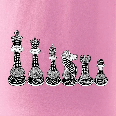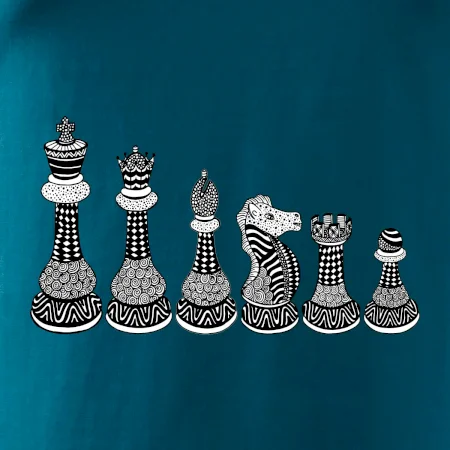Triko jako dárek pro šachistu nebo šachistku. Pokud znáš pojmy jako pěšák, dáma, král, věž nebo kůň, pak je tohle tričko přesně pro tebe nebo někoho v tvém okolí. Tričko s šachovými figurkami v řadě. Šach mat!