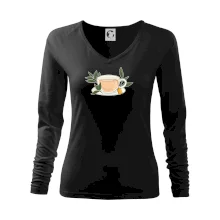 Tolerantnější vypasování dámského střihu, který je vhodný pro všechny typy postavy, ideální délka rukávů a konzervativní výstřih zakončený žebrováním, které skvěle drží tvar.