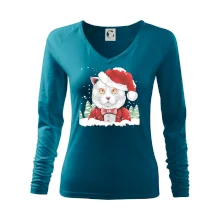 Tolerantnější vypasování dámského střihu, který je vhodný pro všechny typy postavy, ideální délka rukávů a konzervativní výstřih zakončený žebrováním, které skvěle drží tvar.