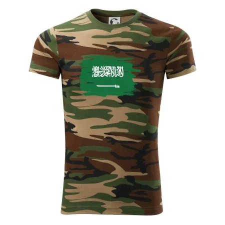 Tričko střední gramáže v barvách camouflage. Střih s bočními švy. Lem průkrčníku ze žebrového úpletu s přídavkem 5 % elastanu. Vnitřní část zadního průkrčníku začištěna páskou v barvě camouflage.