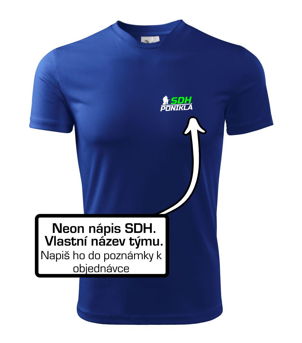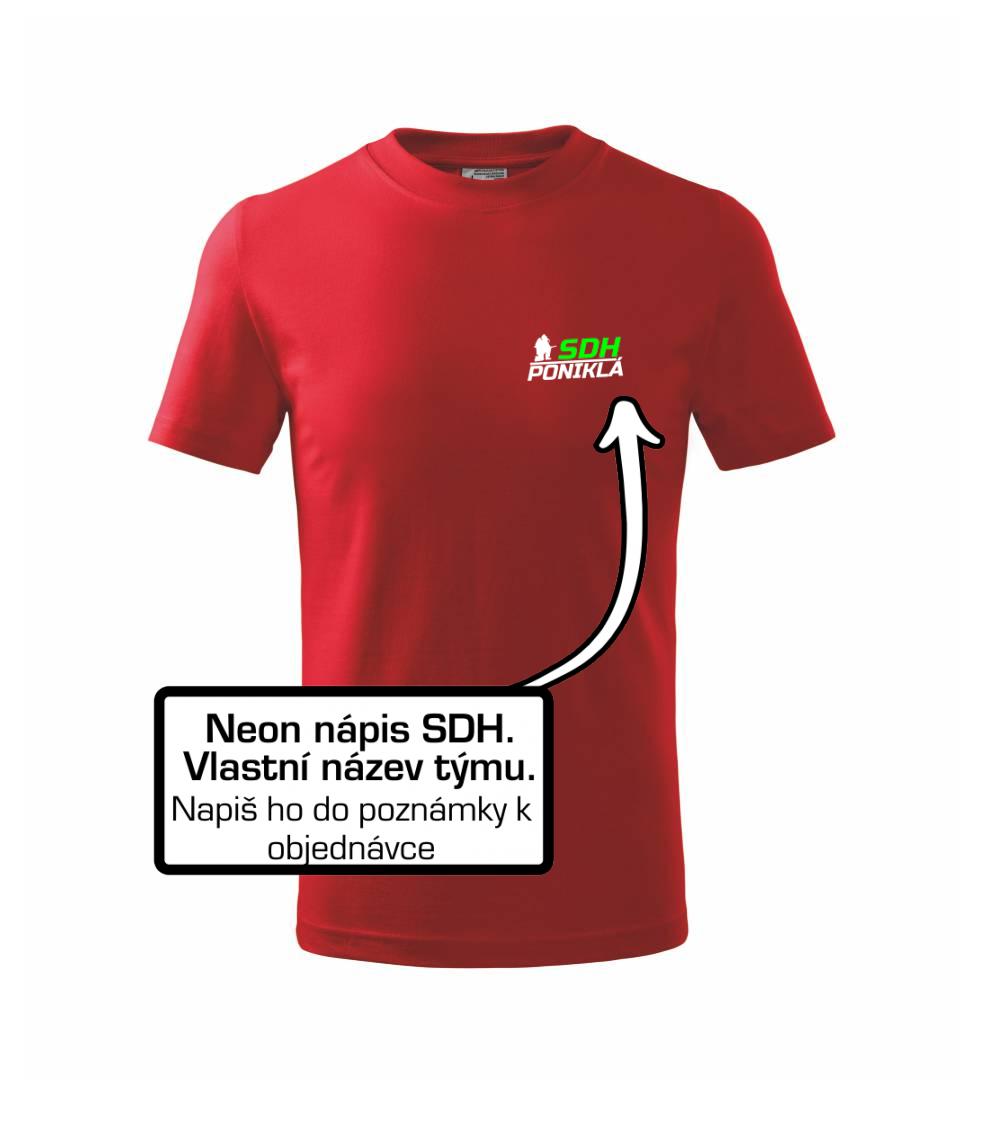 Triko pro hasiče s fluorescenčním potiskem SDH. Motiv klečícího hasiče s vlastním názvem sboru pro tebe i celý tým.