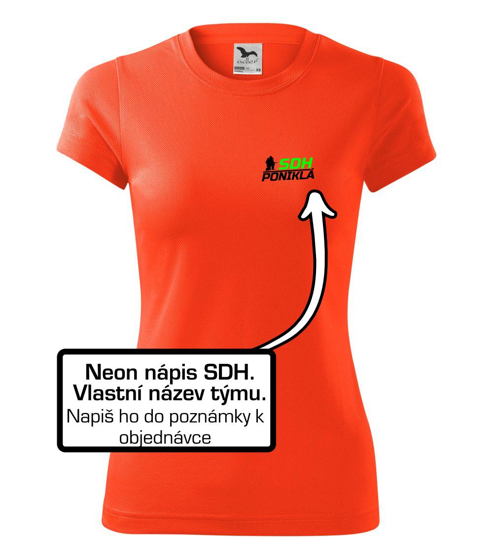 Triko pro hasiče s fluorescenčním potiskem SDH. Motiv klečícího hasiče s vlastním názvem sboru pro tebe i celý tým.