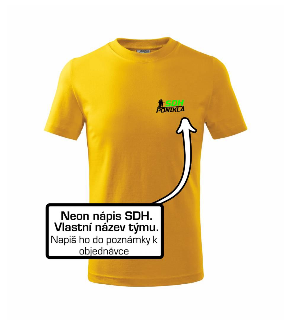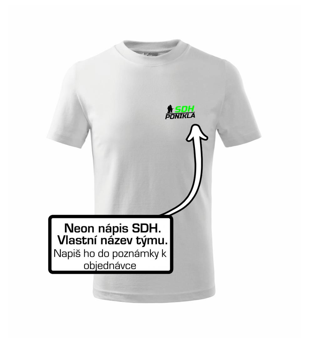 Triko pro hasiče s fluorescenčním potiskem SDH. Motiv klečícího hasiče s vlastním názvem sboru pro tebe i celý tým.