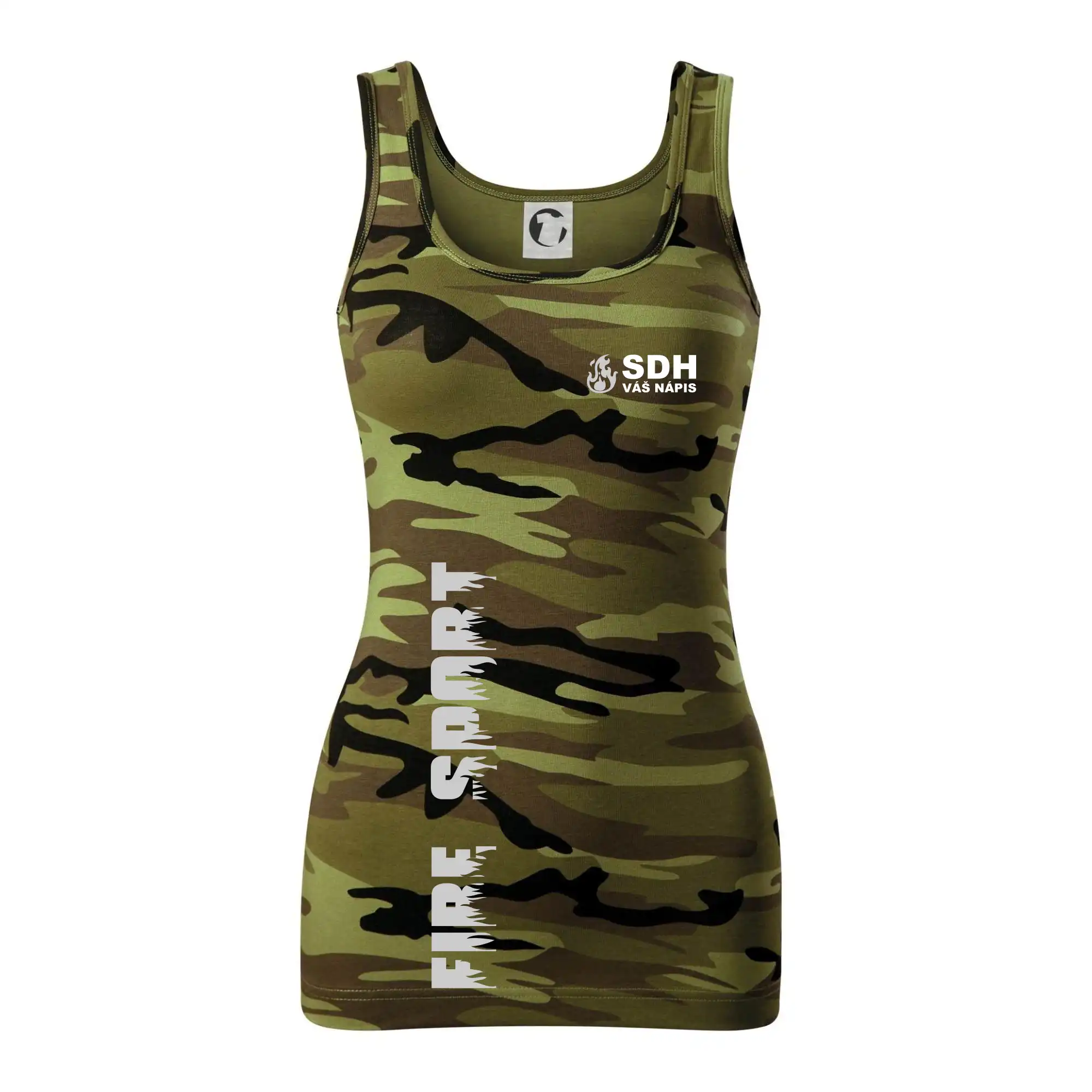 SDH REFLEXNÍ nápis (oheň, firesport, název sboru - vlastní nápis) - Dámské Maskáčové tílko