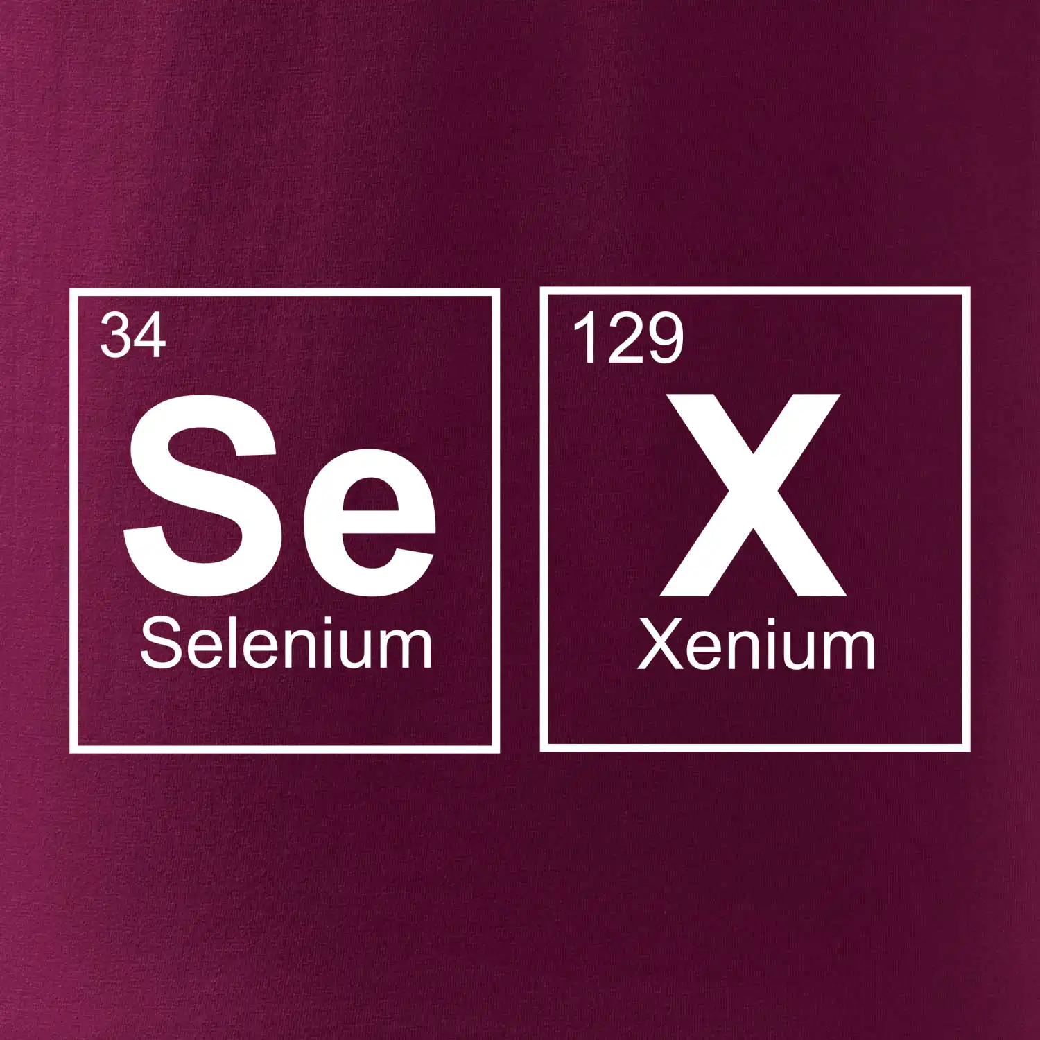 Triko pro někoho, kdo má rád sex a chemii. Z prvků periodické tabulky lze poskládat mnoho. Proč si tedy nevybrat ten správný prvek a na triko si nenatisknout třeba nápis SeX. Vtipné trička a mikiny s tématikou sexu a periodických tabulek.