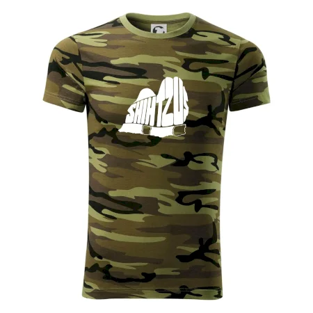 Tričko střední gramáže v barvách camouflage. Střih s bočními švy. Lem průkrčníku ze žebrového úpletu s přídavkem 5 % elastanu. Vnitřní část zadního průkrčníku začištěna páskou v barvě camouflage.