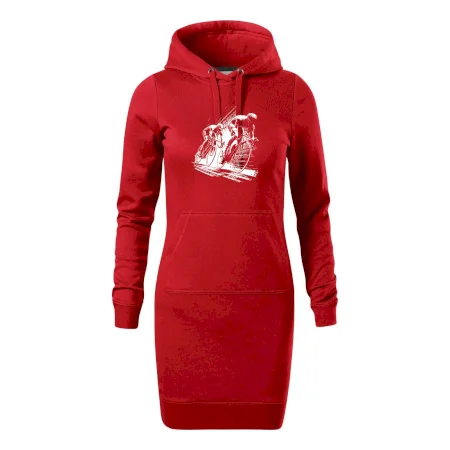 Dámské mikinové šaty MALFINI Snap 419 jsou ideální volbou pro ženy, které hledají pohodlný a stylový kousek pro volný čas nebo každodenní nošení. Lehce vypasovaný střih s bočními švy podtrhuje ženskou siluetu, zatímco kapuce s podšívkou a stahovací šňůrkou dodává ležérní vzhled.