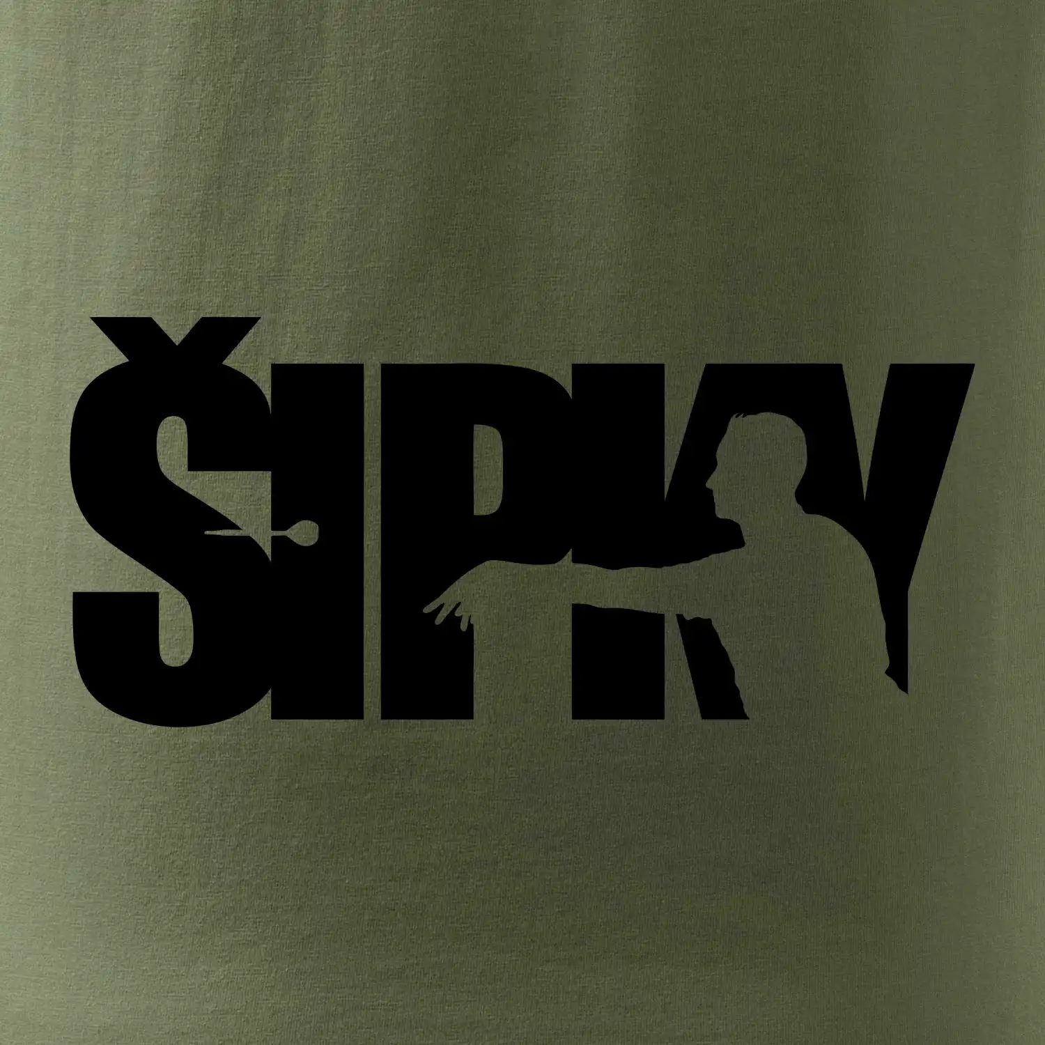Šipky - nápis se šipkařem