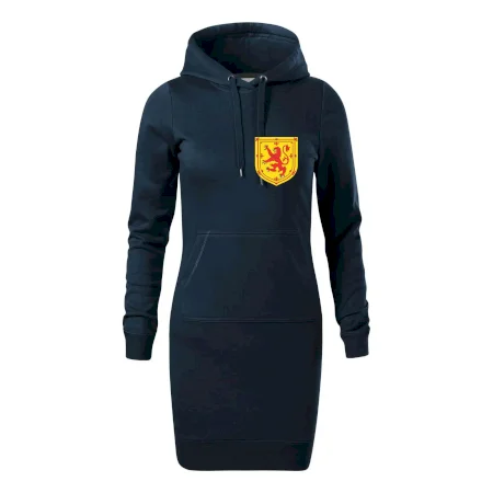 Dámské mikinové šaty MALFINI Snap 419 jsou ideální volbou pro ženy, které hledají pohodlný a stylový kousek pro volný čas nebo každodenní nošení. Lehce vypasovaný střih s bočními švy podtrhuje ženskou siluetu, zatímco kapuce s podšívkou a stahovací šňůrkou dodává ležérní vzhled. Šaty mají délku nad kolena a jsou vybaveny nakládanou kapsou ve stylu „klokanky“. Materiál je měkký a příjemný na dotek díky směsi bavlny a polyesteru s nepočesanou vnitřní stranou.
