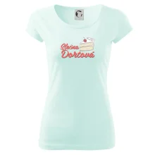 Tričko nebo zástěra pro slečnu, nebo paní cukrářku. Zkrátka pro každou, která ráda peče a vytváří sladké radosti.