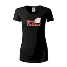 Tričko nebo zástěra pro slečnu, nebo paní cukrářku. Zkrátka pro každou, která ráda peče a vytváří sladké radosti.