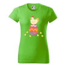 Slepice sedící na velikonočním vejci