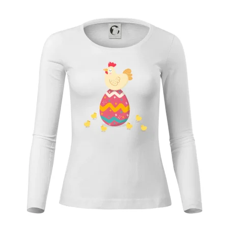 Slepice sedící na velikonočním vejci