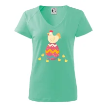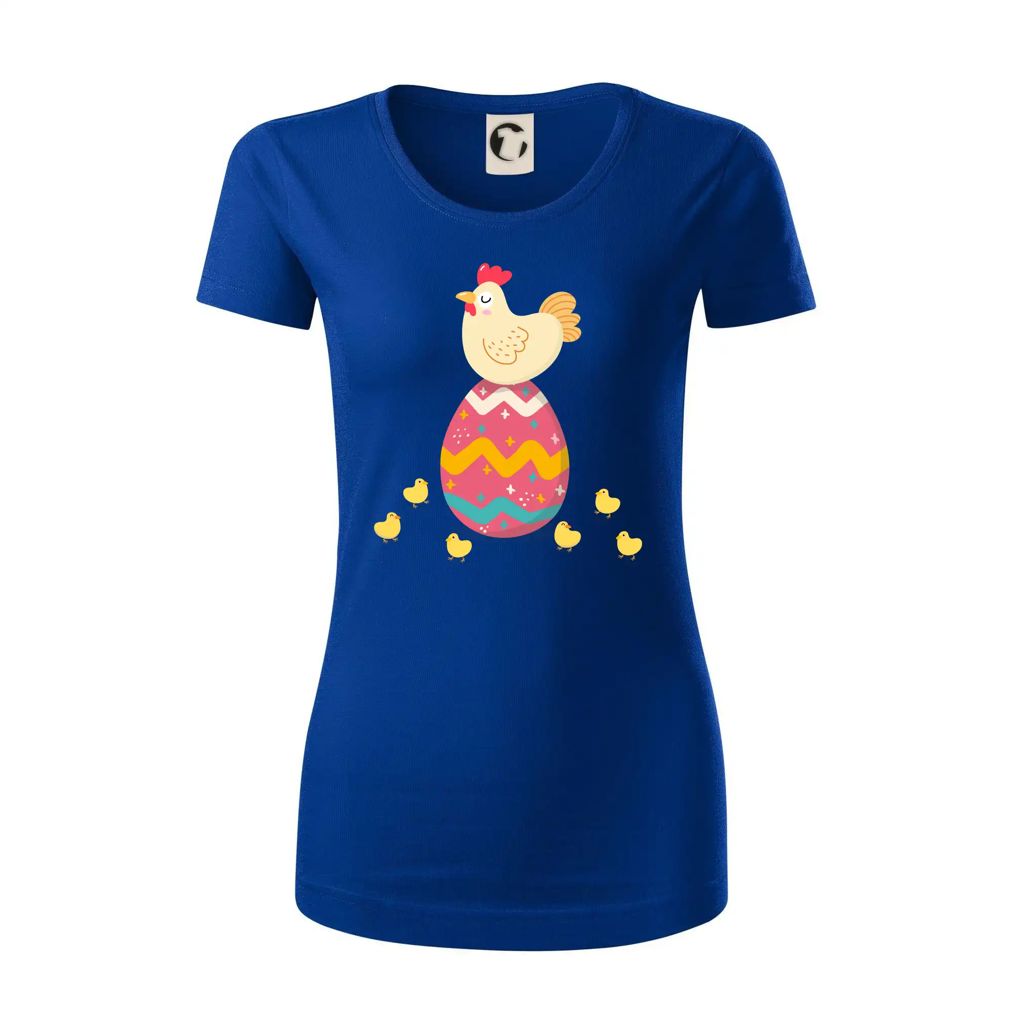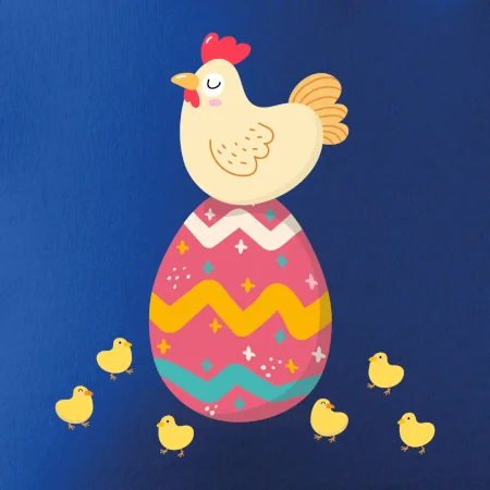 Slepice sedící na velikonočním vejci