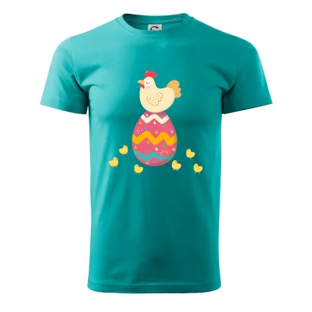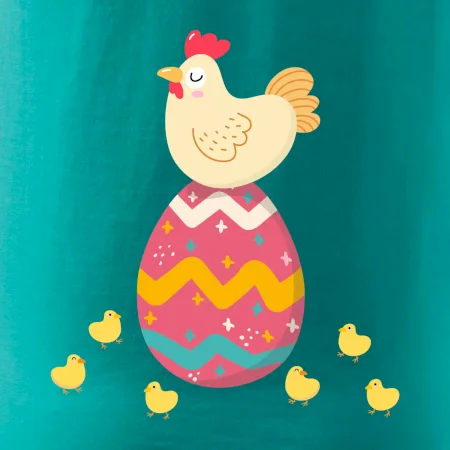 Slepice sedící na velikonočním vejci